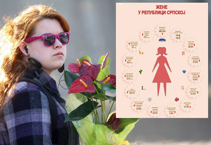Ove, ali i brojne druge statističke podatke, koji oslikavaju kako žive žene u Republici Srpskoj, ali i kakav je njihov položaj i dokle smo stigli kada je u pitanju rodna ravnopravnost, objavio je Zavod za statistiku RS, povodom 8. marta.