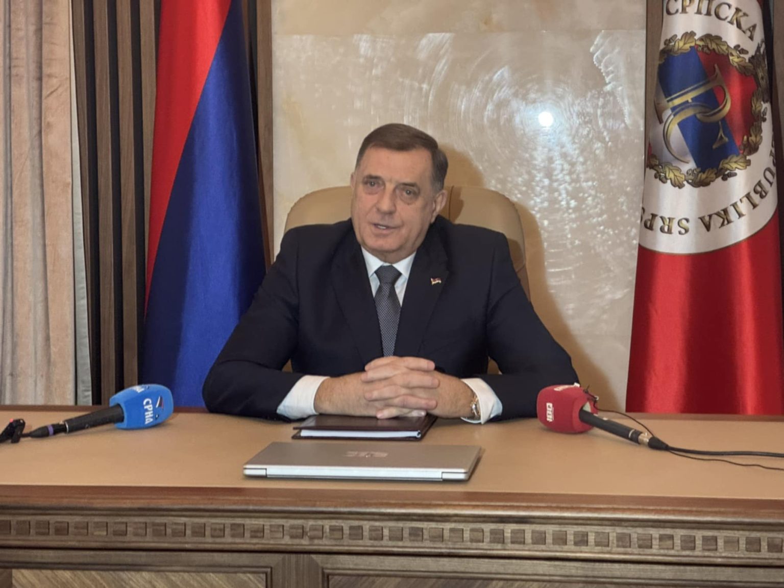"Dozvolite mi da jasno ponovim, Republika Srpska i ja smo opredijeljeni za mirno i pregovaračko rješenje aktuelne krize koju je pokrenuo Šmit", poručio je Dodik.
