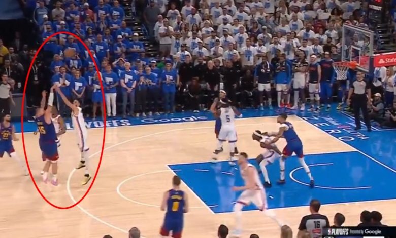 Denverov napad je zapeo i ostalo je još malo do kraja. Jokić je uzeo loptu na vrhu reketa i s jedne noge šutirao trojku preko Četa Holmgrena, koji je visok 2,16 metara i uz to je imao ispružene ruke.
