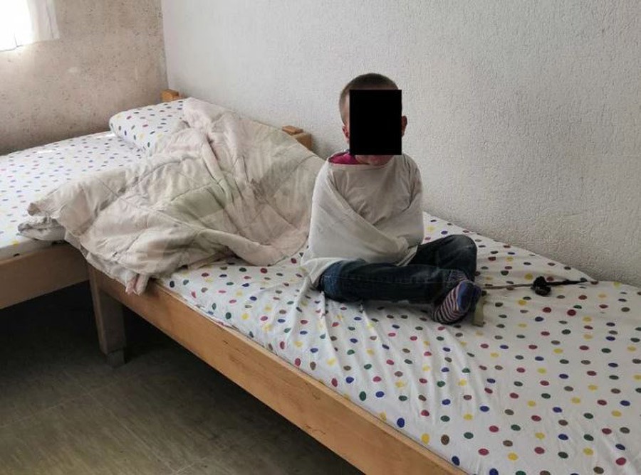 Na fotografijama koje je dostavila medijima vidi se kako su djeca vezana za namještaj i radijatore, piše Klix.