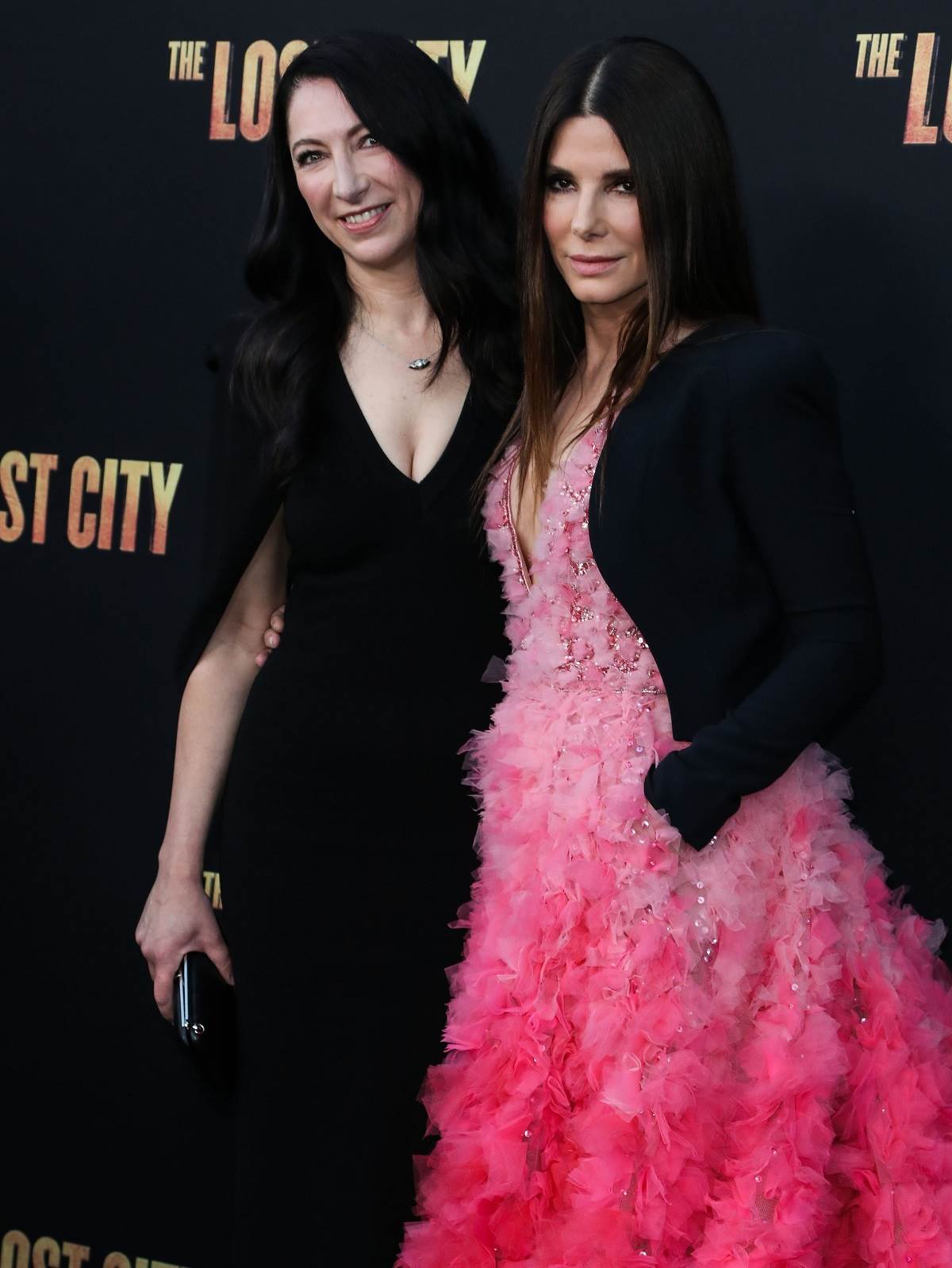 Sandra ima punih 57 godina, ali je izgledala dvostruko mlađe! Obukla je roze haljinu sa vrlo dubokim dekolteom i "ombre" efektom, ukrašenu aplikacijama u obliku cvetova i kristalima. Preko je Sandri stilistkinja Elizabet Stjuart obukla kratki sako, a ispod haljine je nosila kožne čizme iznad koljena! Sandra je na premijeru povela svoju sestru Džezin, koju smo retko imali prilike da vidimo.