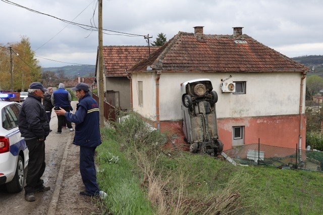 Nevjerovatna saobraćajna nesreća dogodila se jutros u Umčarima, na periferiji Beograda – automobil je sletio s puta i udario u kuću, ali tako da se bukvalno uspravno “zalijepio” za zid kuće! Srećom, vozač, koji je bio i jedini putnik, lakše je povrijeđen i zbrinut je u Hitnoj službi Grocka.