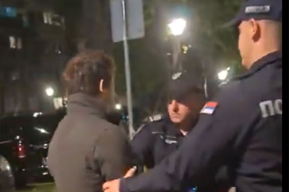 Na snimku koji je objavljen na X-u vidi se da policija privodi jednog muškarca u svoj automobil, ali on ubrzo izlazi na druga vrata u odnosu na ona kroz koja je ušao i odlazi u masu.