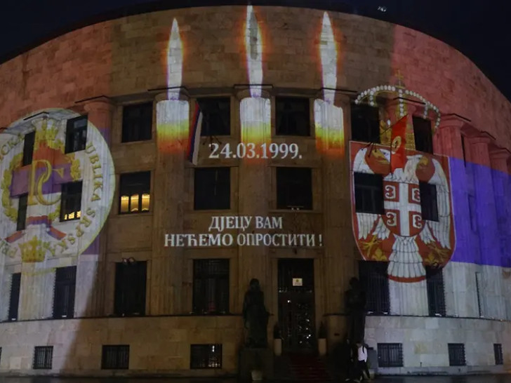 Povodom obilježavanja Dana sjećanja na stradale u NATO agresiji Palata Republike večeras je osvijetljena bojama zastava Republike Srpske i Srbije.