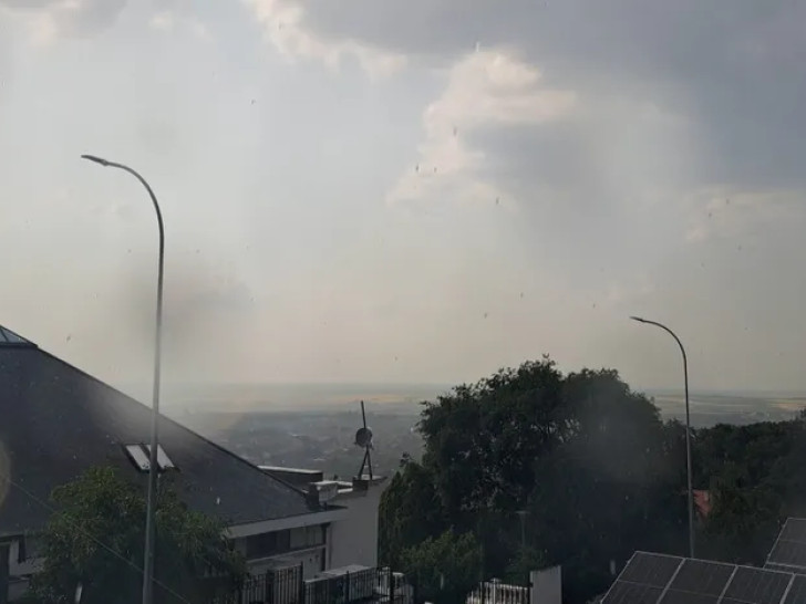 Kiša pada već dvadesetak minuta, ali riječ je o malom oblaku iza koga se ukazalo sunce – istovremeno s pljuskom. Začulo se i nekoliko jakih udara gromova.